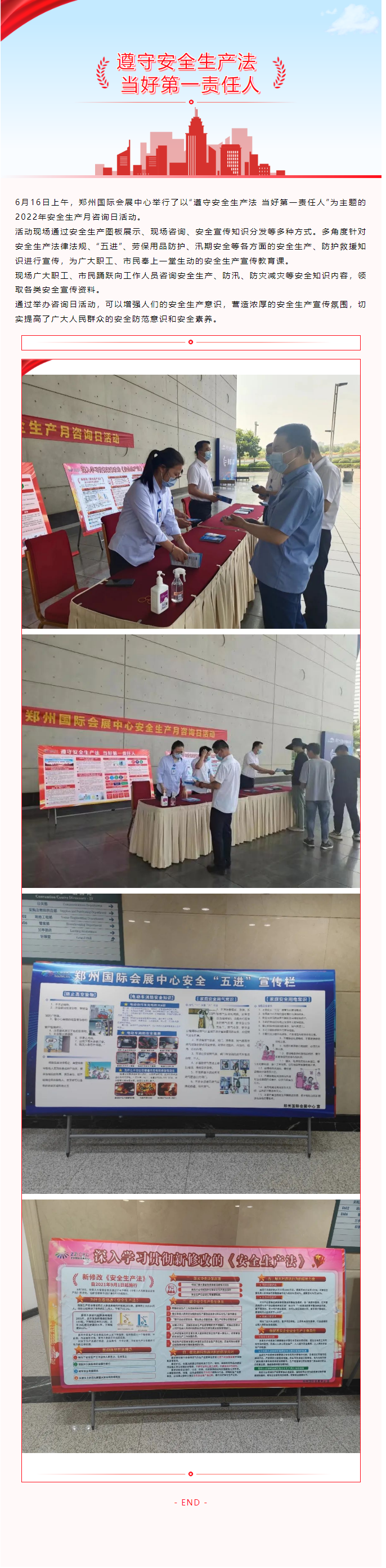 首頁新聞中心展會新聞文章詳情 文章詳情 鄭州國際會展中心舉行安全生產(chǎn)月咨詢?nèi)栈顒?/h1> 6月16日上午,鄭州國際會展中心舉行了以“遵守安全生產(chǎn)法 當(dāng)好第一責(zé)任人”為主題的2022年安全生產(chǎn)月咨詢?nèi)栈顒印?