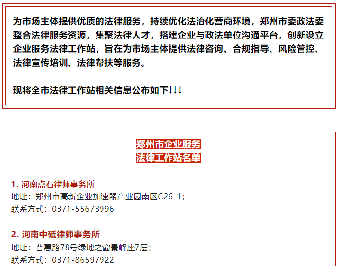 【轉(zhuǎn)載】鄭州市委政法委在全市設立企業(yè)服務法律工作站